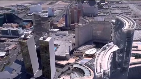View coming over CityCenter behind Monte Carlo facing east to MGM