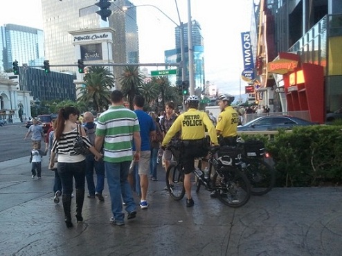 Watch Video of Las Vegas Metro react to a fight on the Strip